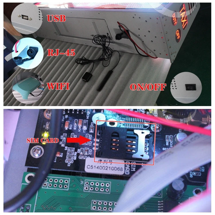 We have specially customized power supply for the taxi, the voltage in the taxi is 12v/24v then the power can transform the 12v/24v into 5v and supply power to the LED module.