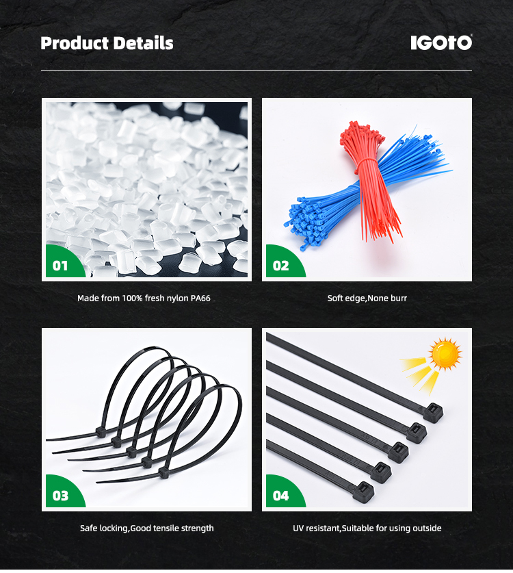 Igoto Nylon Cable Ties Self Locking, Compliant with SGS, CE, Rohs