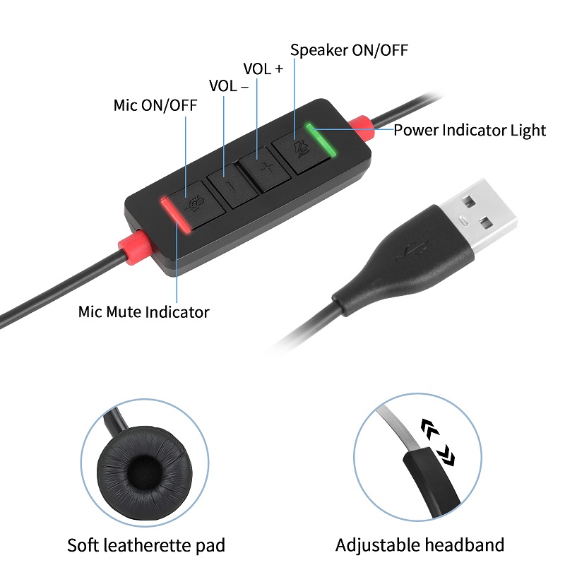 | Feature one: | Adjustable headband | type: | Hands-free, USB computer headset |