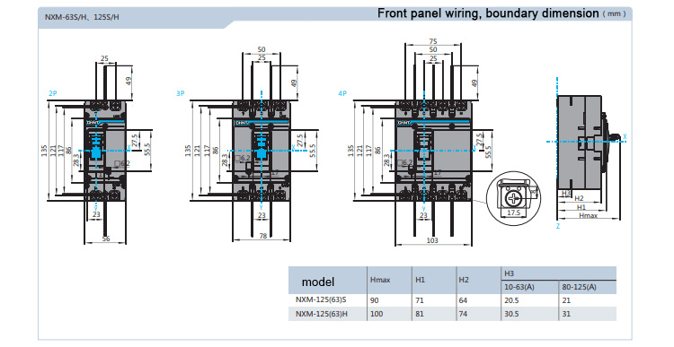 NXM-125S,H/2300,3300,4300 | 10,16,20,25,32,40,50, 63,80,100,125 | 2,3,4 | 56/78/103x135x56/78/103 |