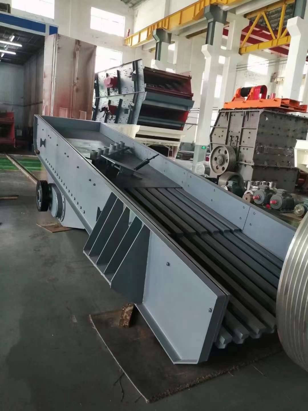 1. The vibrating feeder consists of a vibrating frame, a spring, a vibrator, a motor vibrating device and a motor.