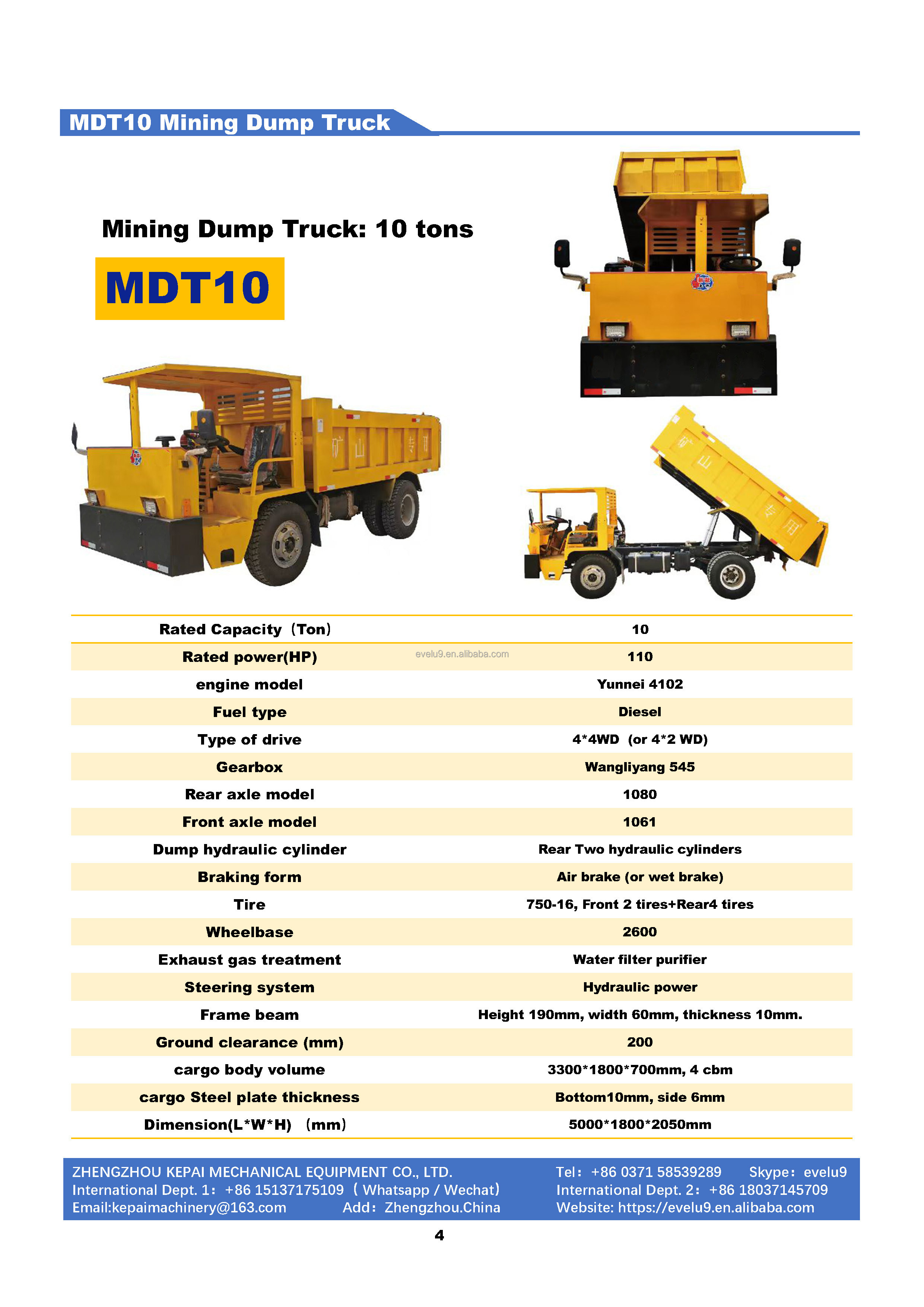 MDT series 4-45 ton mining dump trucks are mainly used in underground mines, above-ground mines and mining areas, muddy roads, tunnel construction, building construction, swamps, river beaches, deserts, rice fields, tropical rain forests, ice and snow, etc.