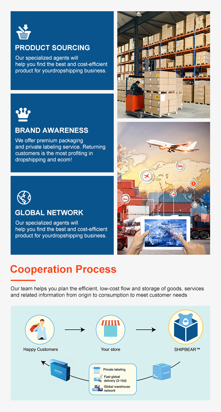 A: We purchase, we store, and we ship. You sell, you sit, you win. Headquartered in China, Hong Kong and Sweden, Shipbear provides efficient, fast and reliable services from sourcing, warehousing, packaging, branding to global shipping.
