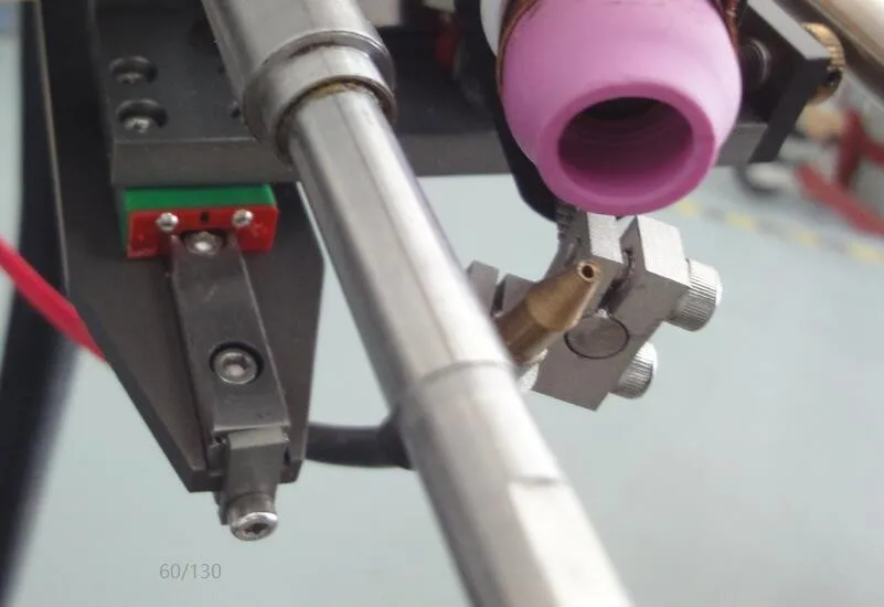 Multiple torch positioning adjustments allow virtually all tube-sheet joint designs to be welded. For welds requiring filler wire addition, an optional wire feeder can be mounted on the weld head. A standard wire spool, mounted directly on the Head, provides precise and positive wire feeding, not possible with floor-mounted feeders.