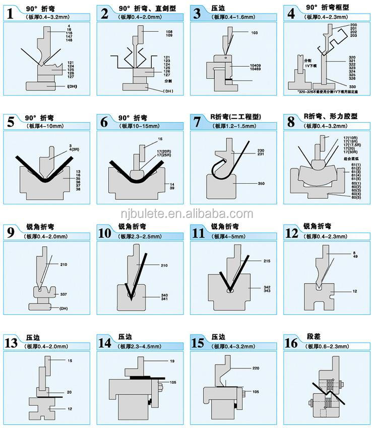 We produce bending dies, the blade materials are mainly made of 42 crmo, 9 crsi, T8, T10, 6 crw2si, Cr12MoV (SKD11), H13K, HMB, W18Cr4V, LD, W6Mo4V2, W18Cr4V, high-quality steel, such as high density, wear-resistant .