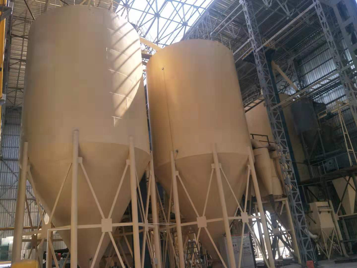 Factory production uses multiple processes. first,The gypsum ore is crushed, transported, fed into the silo and put into storage.ThenThe pulverized gypsum ore is ground into powder with the required fineness by Raymond mill, and then the gypsum powder is transported to the calcination section for calcination through the metering feeding device. The calcined gypsum is modified by the pulverizer and cooled by the cooling device.at last,The finished gypsum is transported into storage.