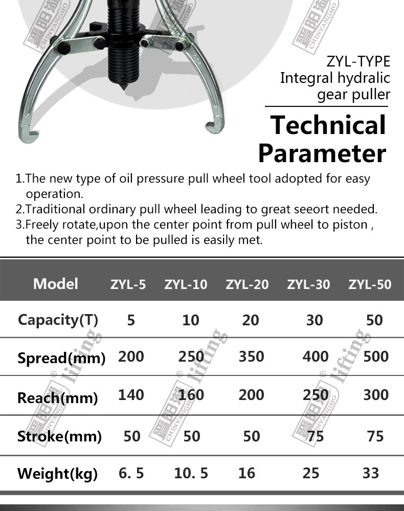 ZYL type manual integral hydraulic bearing puller hand pump hydraulic bearing puller gear puller hidraulico
