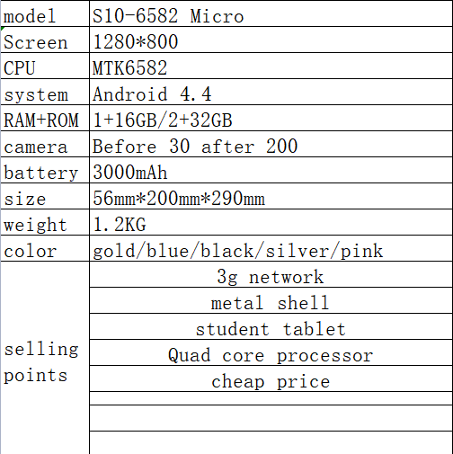 | Processor Manufacturing: | MTK | network: | Wi-Fi, 3G |