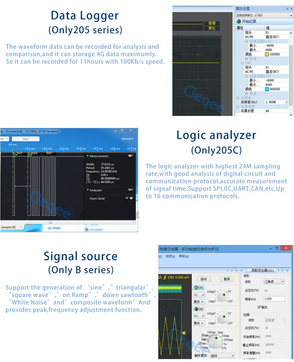 Cleqee ISDS205A spectrum analyzer 3 IN 1 oscilloscope 20M data recorder virtual oscilloscope