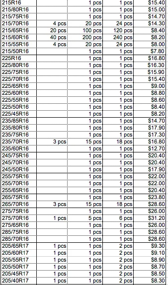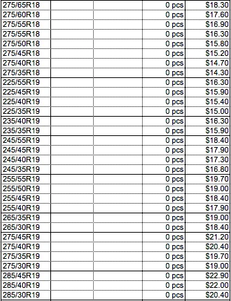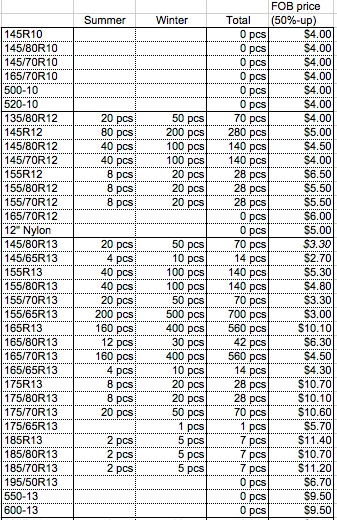 | Korea | 400 pcs | ¥1,750,000 | FOB | 245/70R19.5 etc | |