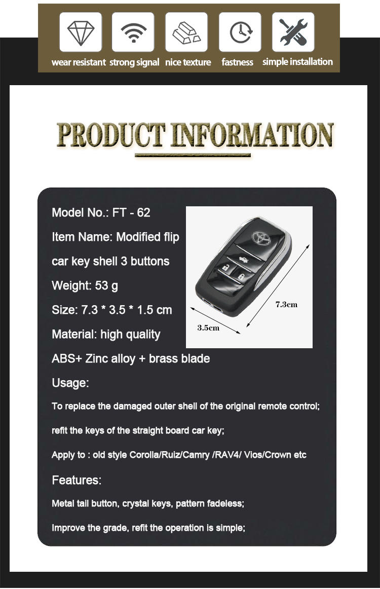 | model: | FT-62 | product name: | TOY Retrofit Flip Car Key Case 3 Buttons with Logo |