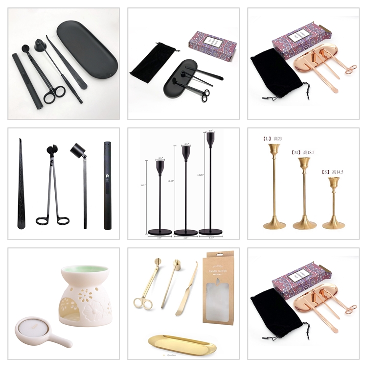 PLEASE NOTE: Wick trimmers, snuffers, spoons, trays and candle care kits are custom products. We can match according to customer needs.