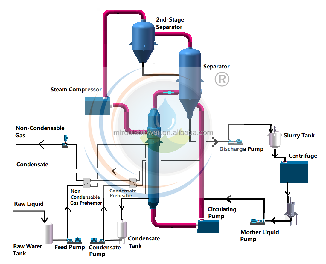 Forced Circulation MVR Evaporator System for Thermal and Vacuum Evaporation and Crystallization Chemical Wastewater Desalination