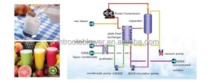 The MVR evaporator utilizes the secondary steam generated in the evaporator to be mechanically compressed by the compressor, pressurized and heated, and then condensed by the heat exchanger to make full use of the latent heat of the steam, except for startup. Running upward, the whole evaporation process does not need a single steam in theory, so that the originally discarded steam can be fully utilized, latent heat is recovered, and thermal efficiency is improved. The economy is equivalent to 30-effect multi-effect evaporation.