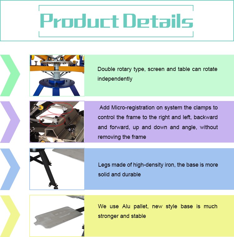 Adjust the screw handle to move the screen in all directions, very accurate multi-color registration | ||