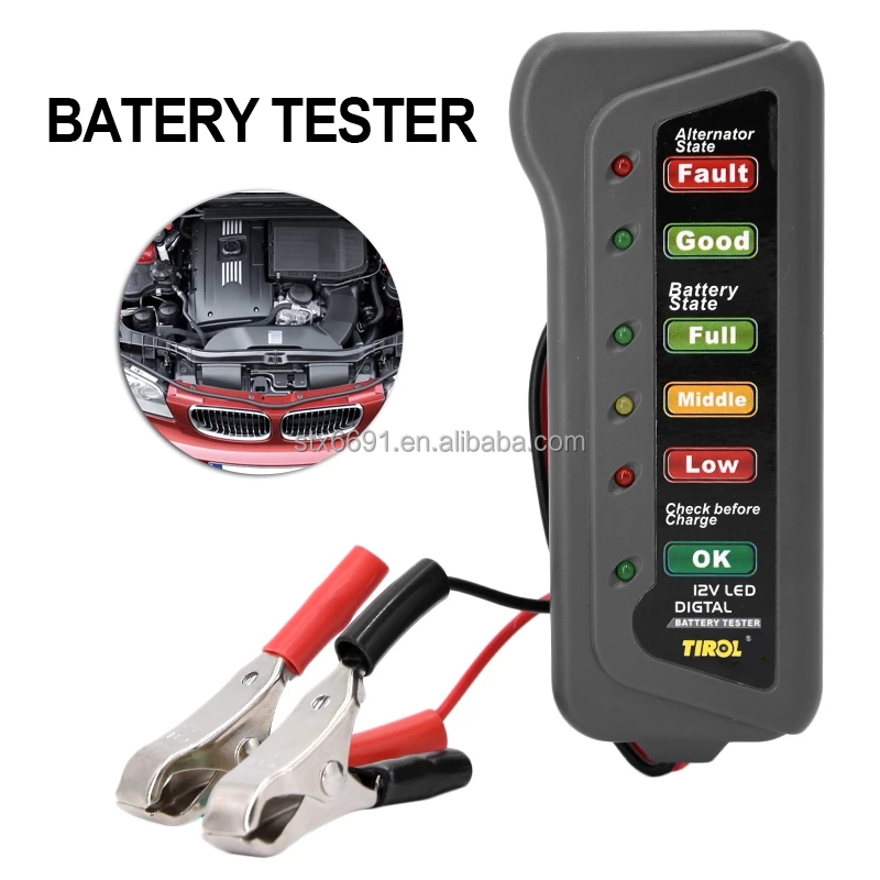 Automotive Digital Battery Tester TIROL T16897 12V Automotive Digital Battery Alternator Tester 6 LED Light Display Motorcycle Detector