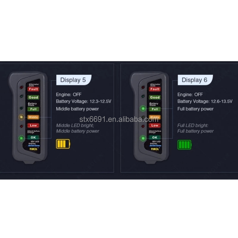 5. Package Contents: 1 x T16897 12V Digital Battery Alternator Tester 6 LED Lights