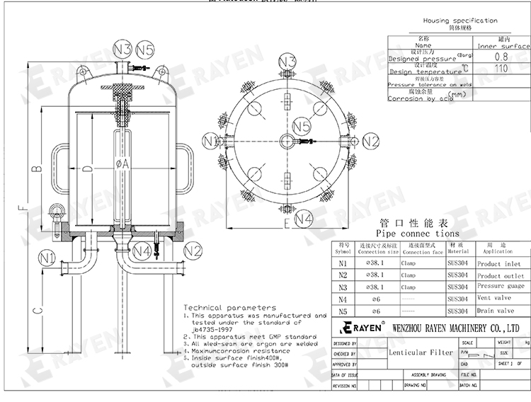 2. Stainless steel wine membrane filtration Beer lens filter shell membrane filter is carried out in a fully enclosed environment. The hygienic housing of the lens filter module has a compact design with a small footprint. JhenTen Industrial Filtratin supplies lens filter modules made from our own line of filter paper media.