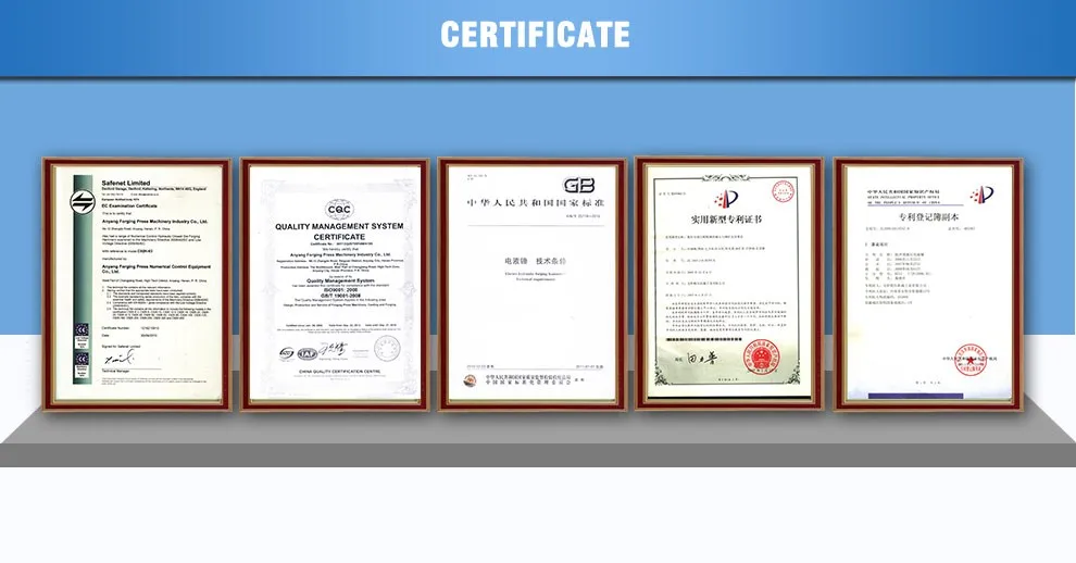 Our anyang blacksmith power forging hammer for sale have got CE, design patent, famose brand etc cetifications.