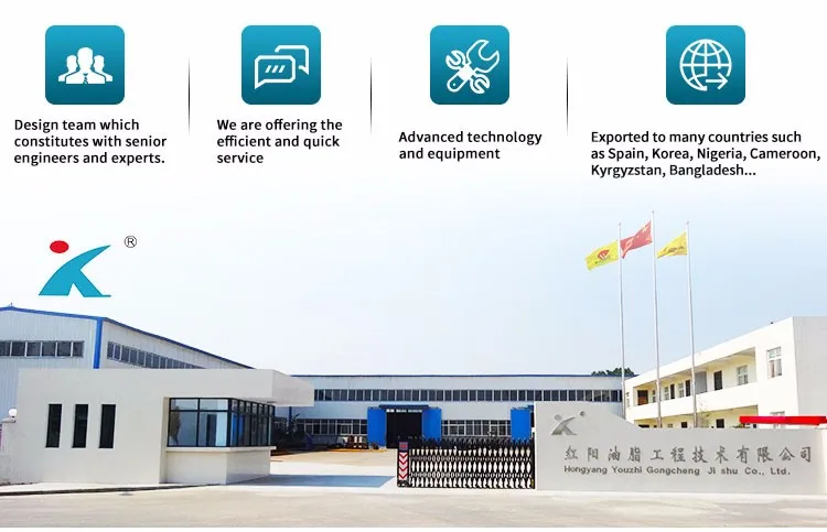 Xinxiang Hongyang Oil Engineering Co.,Ltd,Located in grain and oil hometown of China(cover more an 2/3market in China),we are a professional oil engineering company which offer variety of service such as design,manufacture,installation,debugging,after-sales service etc.