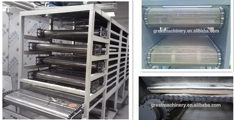 It is a kind of batch,continuous production.The main heating mode could choose electric heating steam heating,gas heating and coal heating.Its main principle is to put the material evenly spread in net,net belt