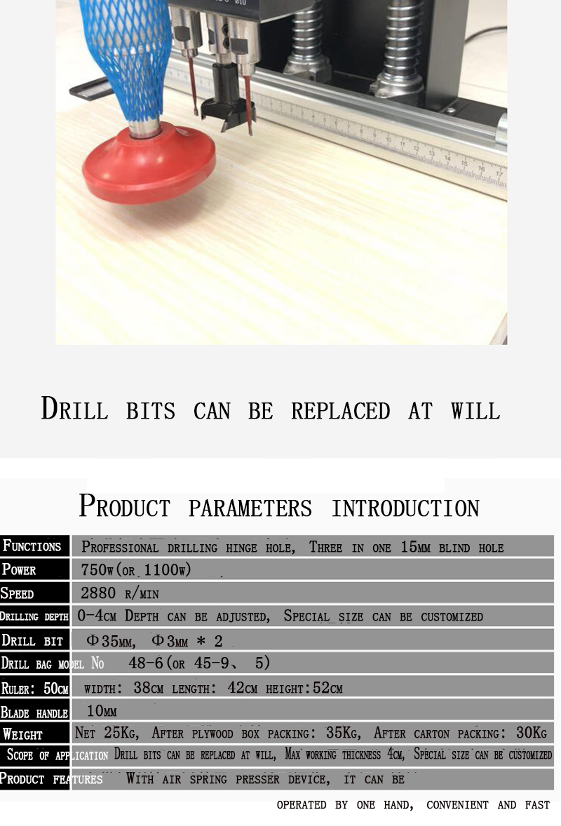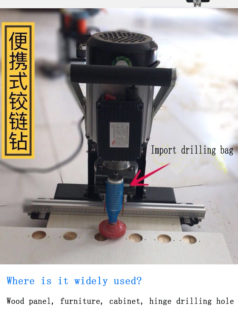 | strength: | 750w (or 1100w) | product name: | Portable Cabinet Door Hinge Drilling Machine |