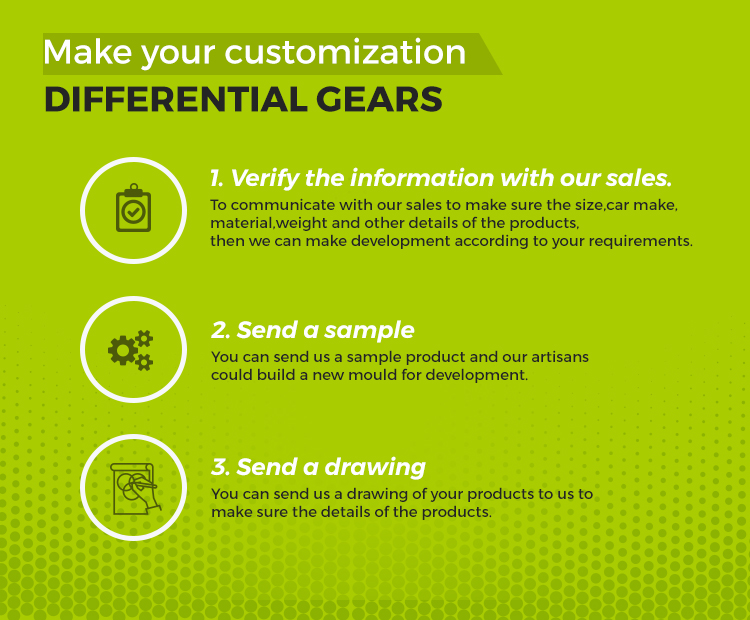 | Packaging Details: | Differential gears are protected by cell deposits. Covered in plastic film, a set of gears in a carton. | Showroom location: | U.S. |