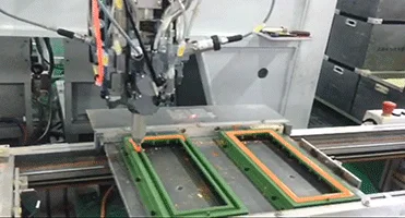 Product application : double -component filter core cover AB PU glue machine