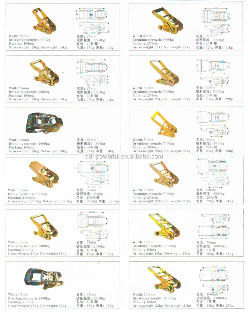 Powerful Machinery | All Type Polyester Webbing Ratchet Lashing Strap According to EN12195 |