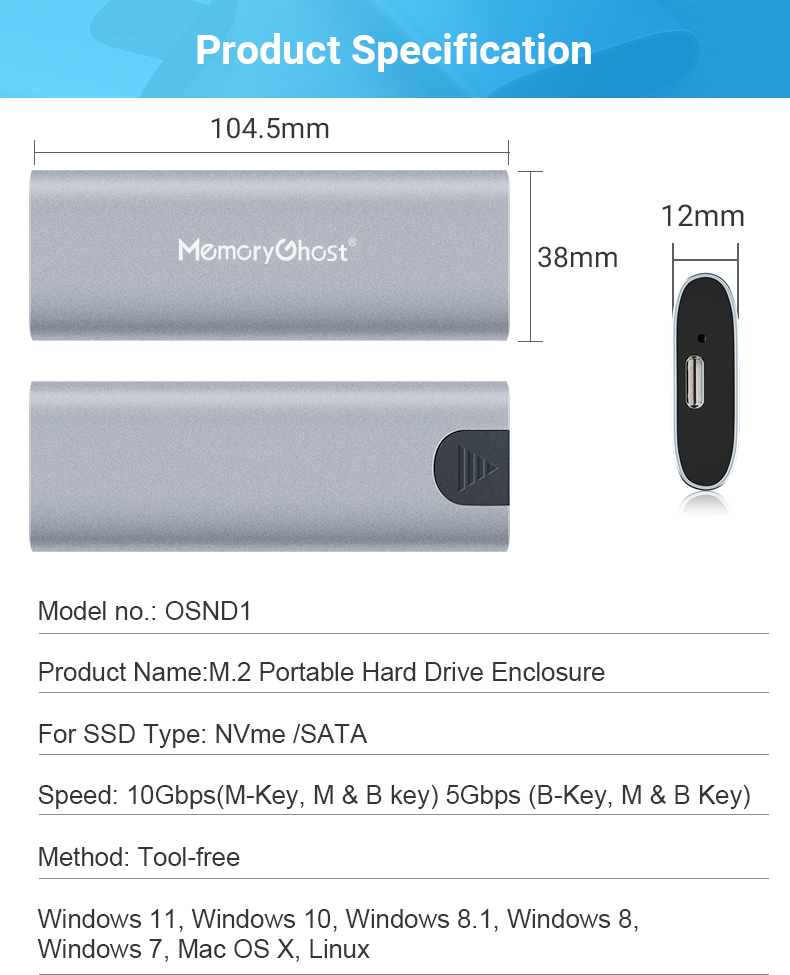 | brand: | memory ghost | product name: | M.2 NVME/SATA External Chassis |