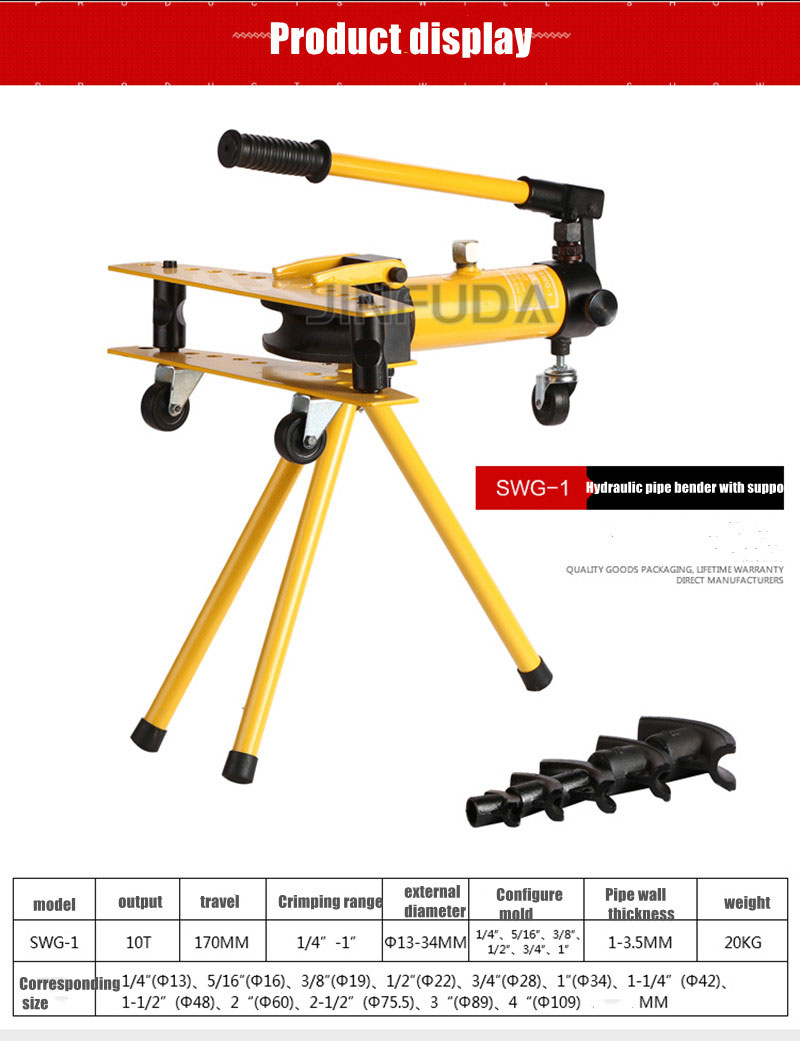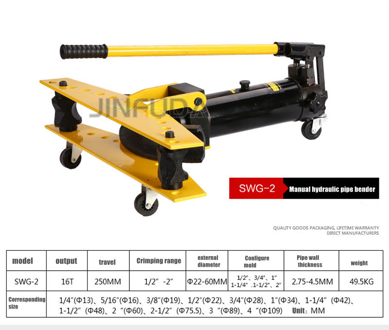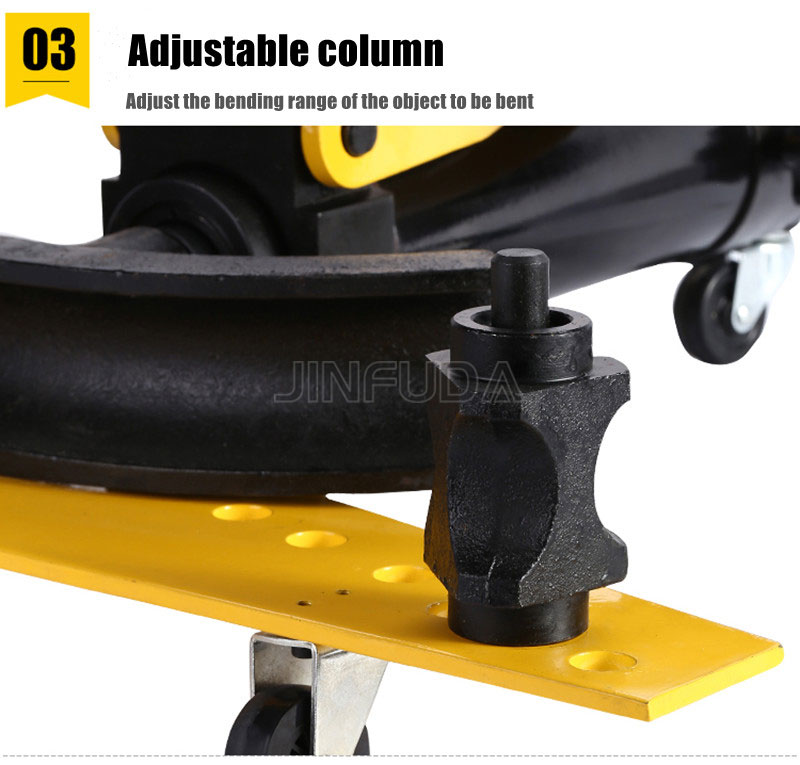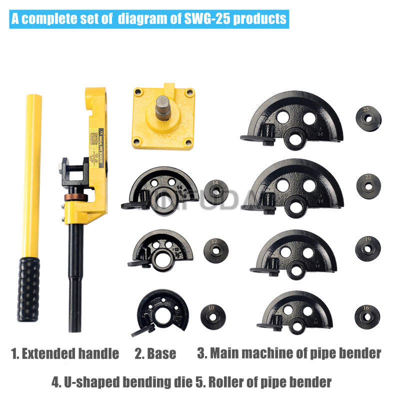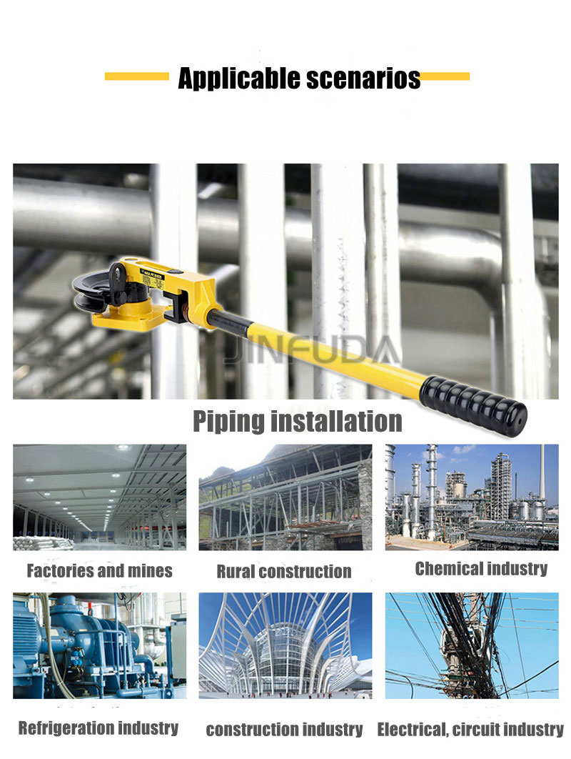 This portable hand bender is equipped with casters. It is made of solid ductile iron. For ordinary water pipes, conductor pipes, conduits, gas pipes, thick steel pipes, etc. The bending angle can be from 180 degrees to 90 degrees.