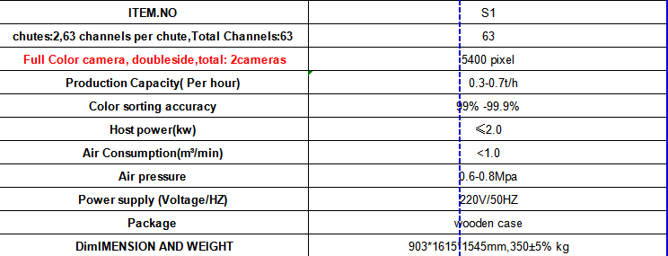 S1 CCD Mutil Grains Color Sorter Quote Raisin Grains Beige Color Sorter Suitable for