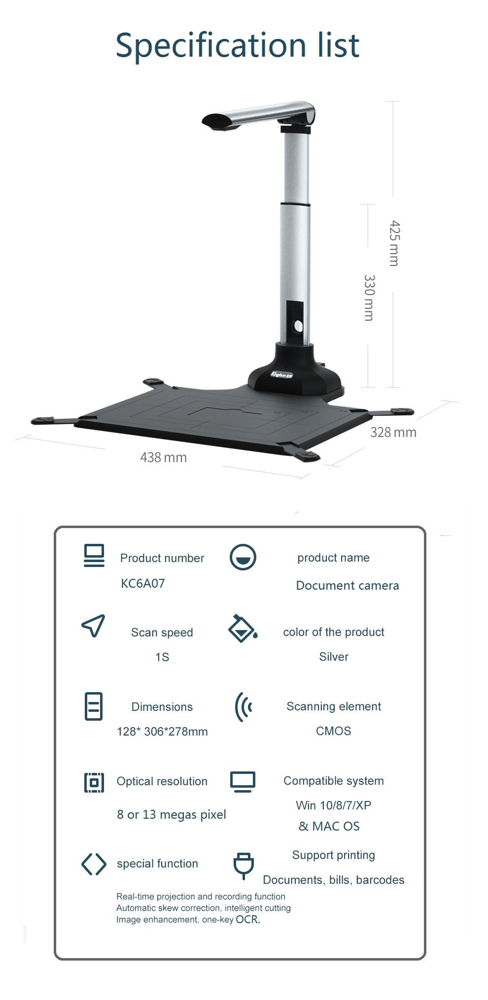 application:Kinghun KC6A07 Document camera(Visual presenter) is an excellent A3 large-area shooting device, which helps to complete wonderful visual presentations online or in the classroom, and is a good choice for teachers and students to interact and communicate.