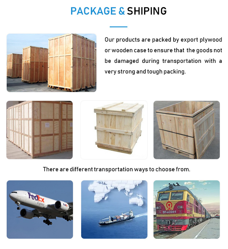 A: The whole machine is wrapped with basic stretch film, packed in export wooden case, also can