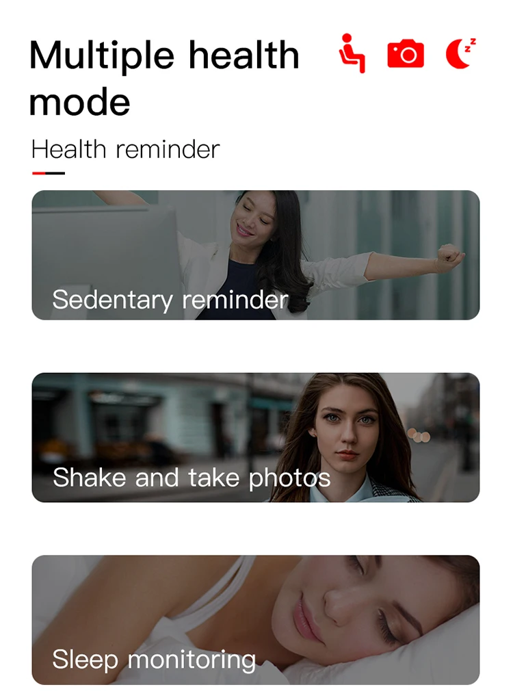 | Function: | Alarm Clock,CALENDAR,Countdown,Call Reminder,Fitness Tracker,MONTH,Message Reminder,Push Message,Sleep Tracker; | Band Material: | Silica Gel; |