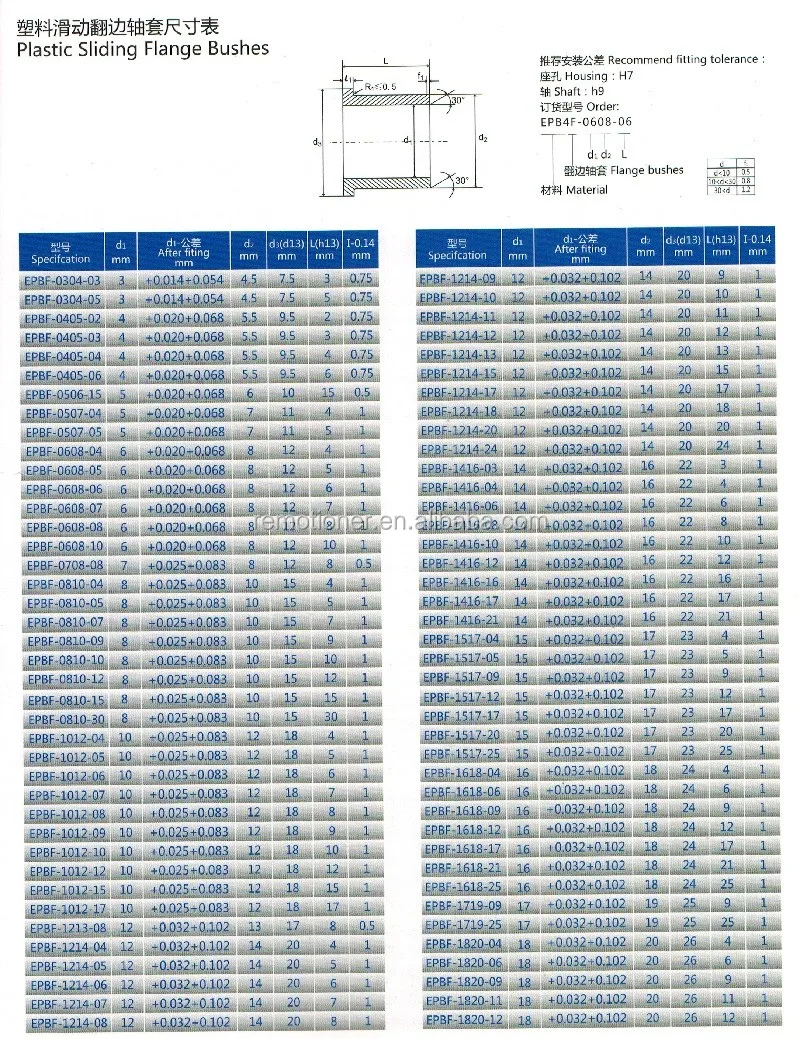 | Bush types: | sleeve or flanged; | Sample/Stock: | available; |