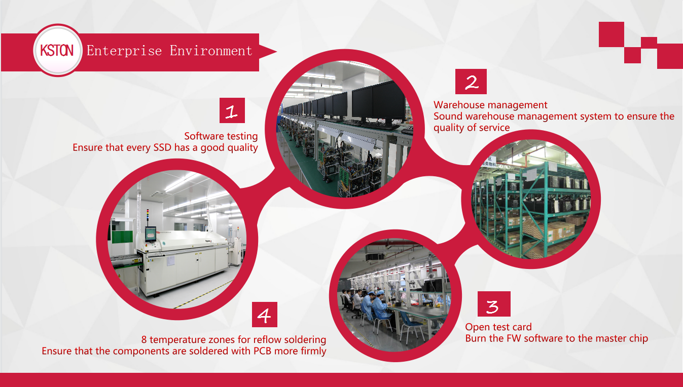 Keston Storage Technology (Dongguan) Co., Ltd. is a high-tech company integrating R&D, production, sales and after-sales service. The company has specialized in solid state drives (SSDs) for over 15 years. Keston now has a complete production line, including SMT, high and low temperature testers, aging equipment and other professional equipment and instruments. Samsung SMT equipment has the most mature calculation program in the world, which can accurately print and mount 3000-4000 pieces per day.
