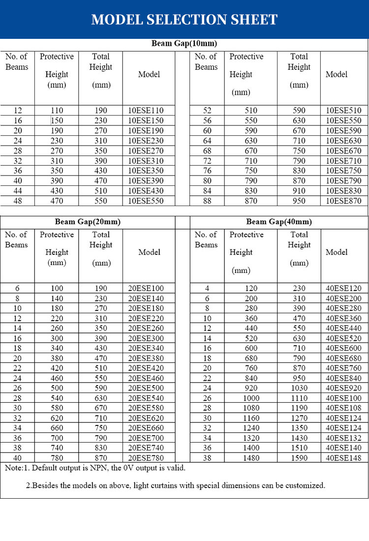 | Protected altitude | 380mm (customized) | Do not. beam | 20 (can be customized) |
