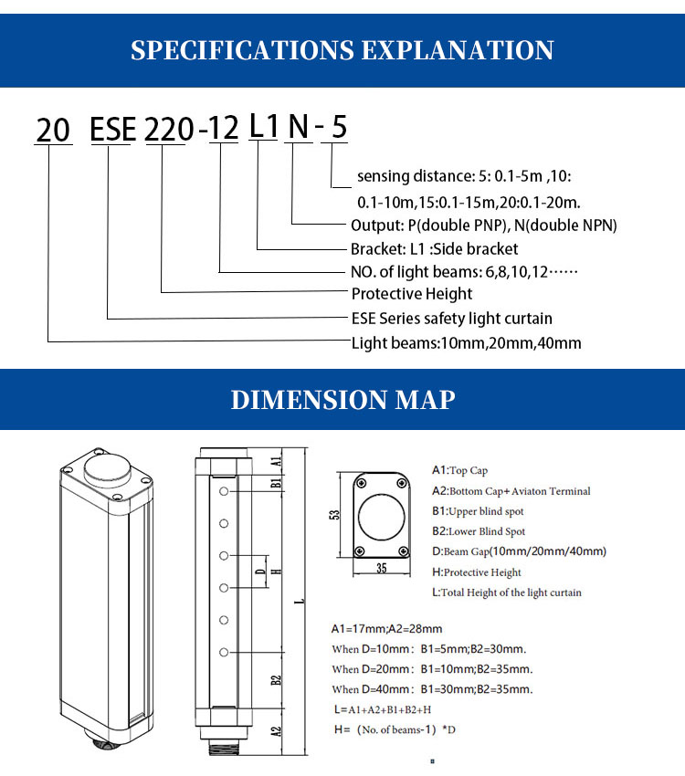 | Protection distance: | 0.1-5m; 0.1-10m, 0.1-20m | Response time: | < 5 milliseconds |