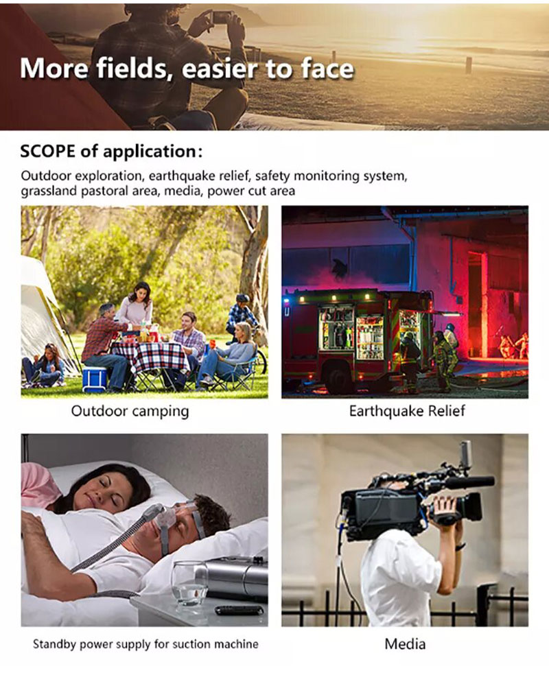 | model: | CN-87 | Energy source: | AC adapters, cars, gas generators, solar panels, others |