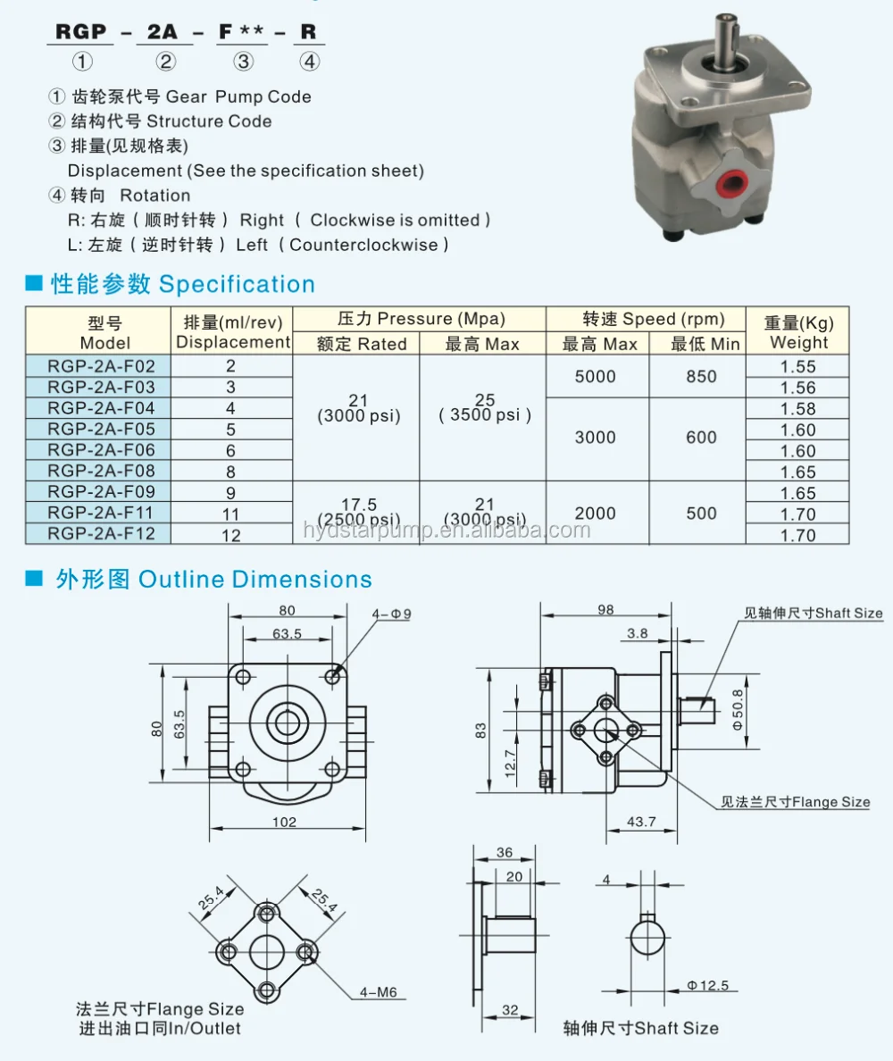 | Product name: | RGP-2A RGP-2AF02/03/04/05/06/08/09/11/12 RGP Small Hydraulic Gear Pump; | Speed: | 500-5000rpm; |