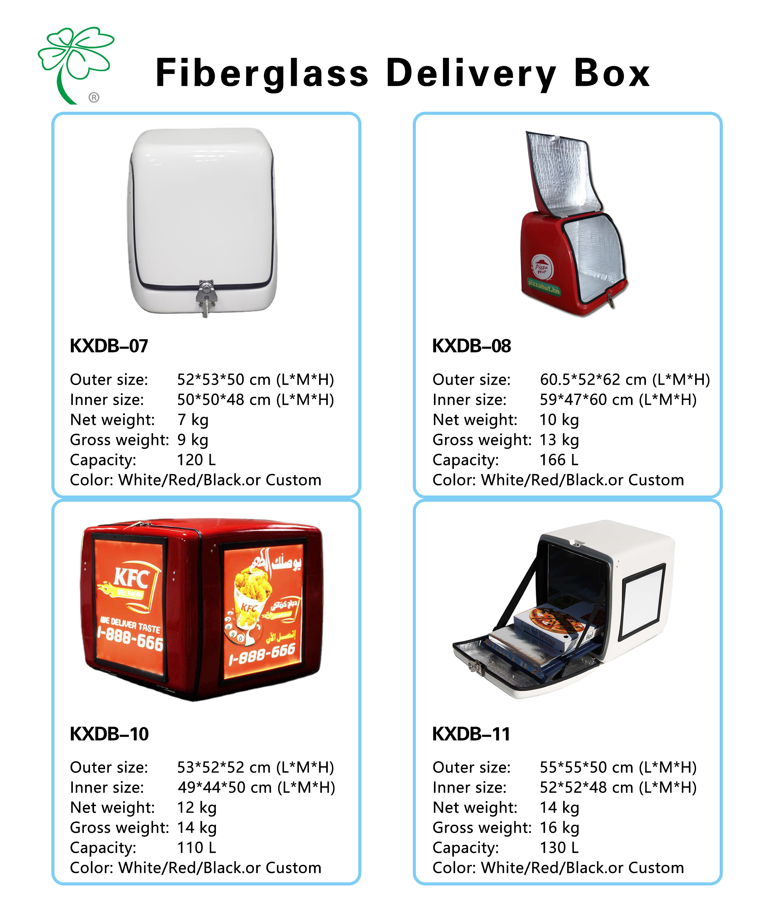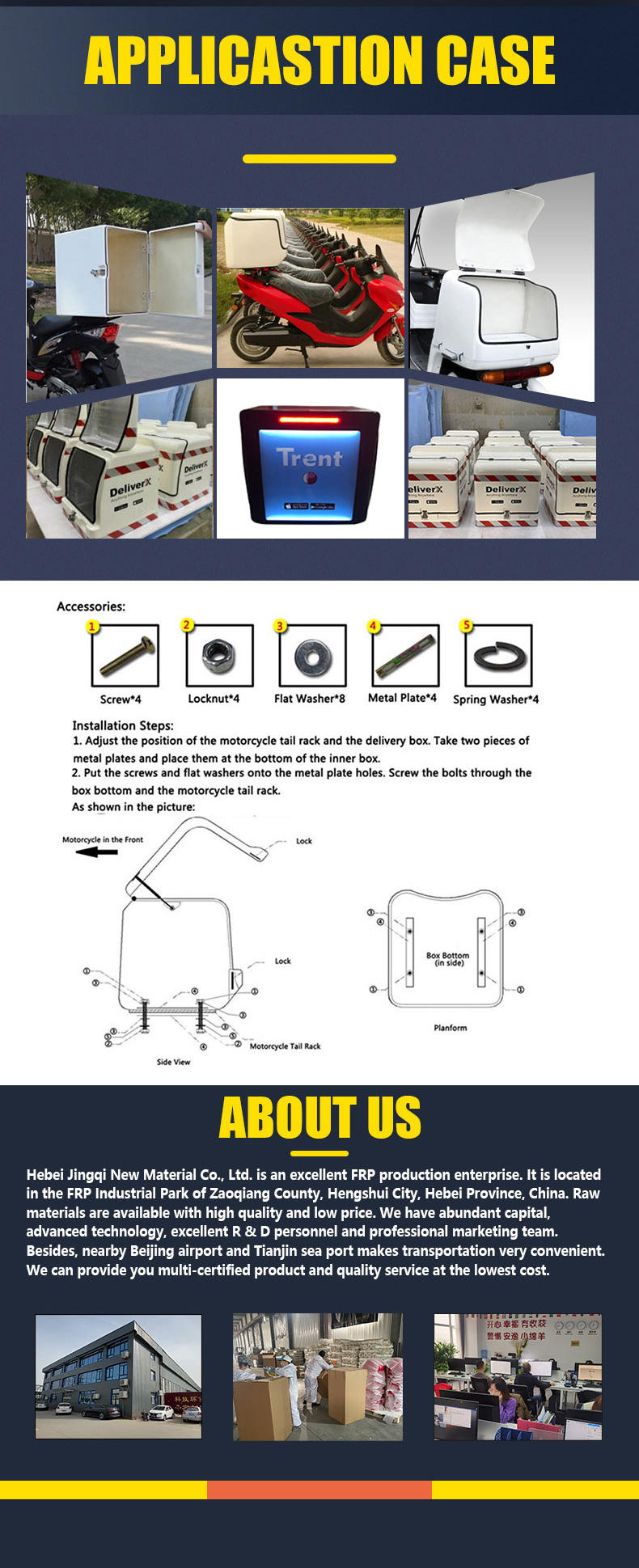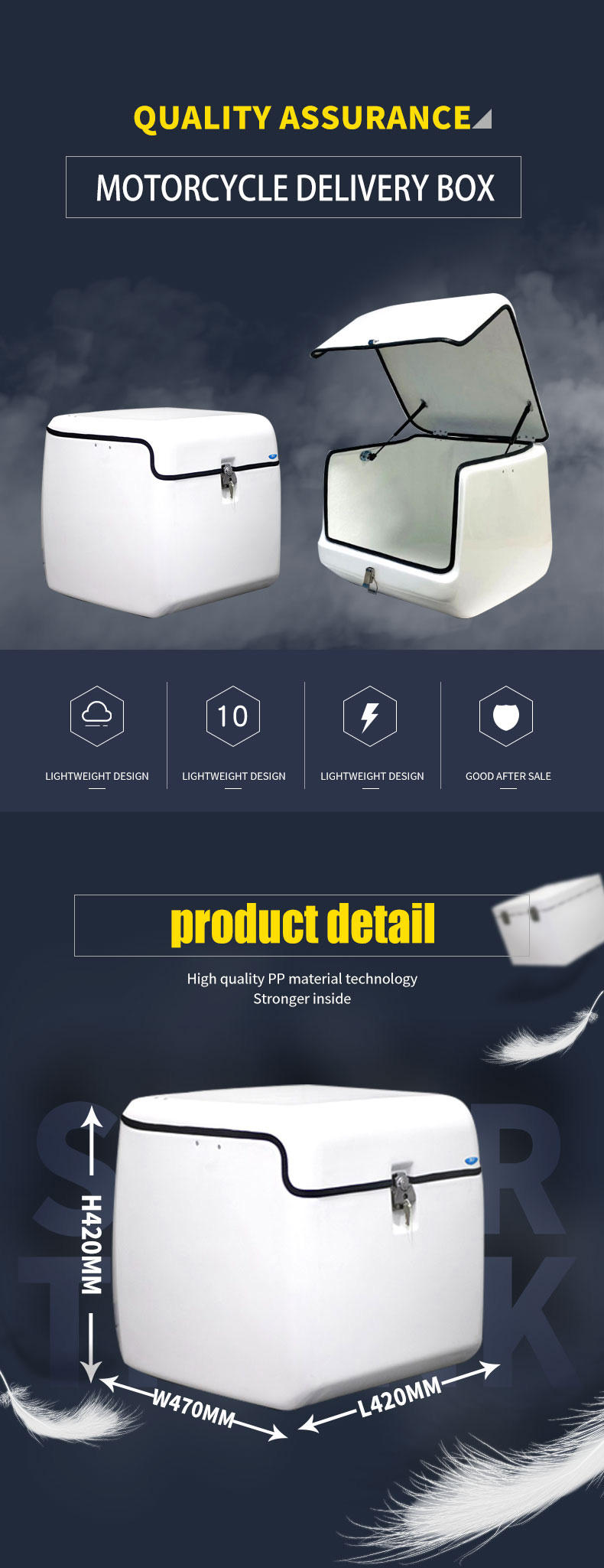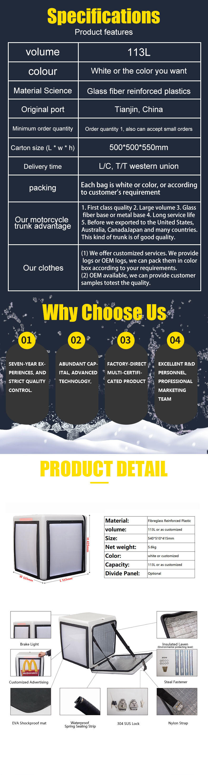 | product name: | FRP material 57L pizza motorcycle takeaway box | volume: | 57L or customized |