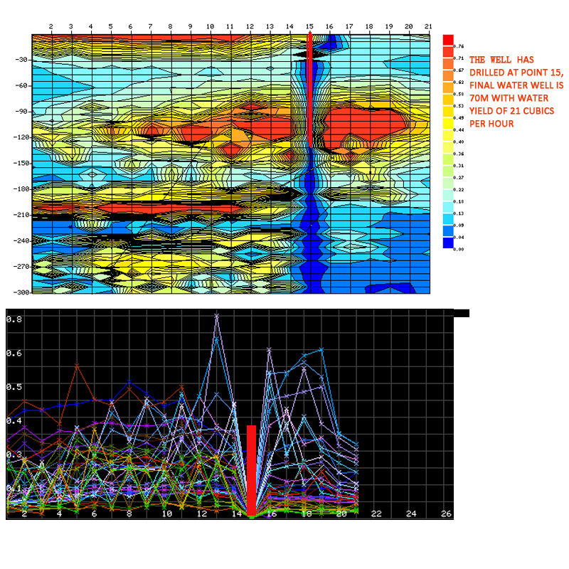 | 1. High speed and high efficiency More than 8,000 meters of profile measurements were completed in one day to realize geological anomalies at different depths, and the speed and efficiency of ore prospecting were about 10 times higher than the traditional resistivity method. |