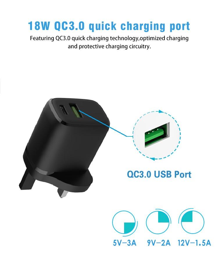 3. USB A 18W QC+USB Type C total 30W shared 30W3. Output range 5V3A /9V3A/12V2.5A/15V 2A ,/20V1.5A max