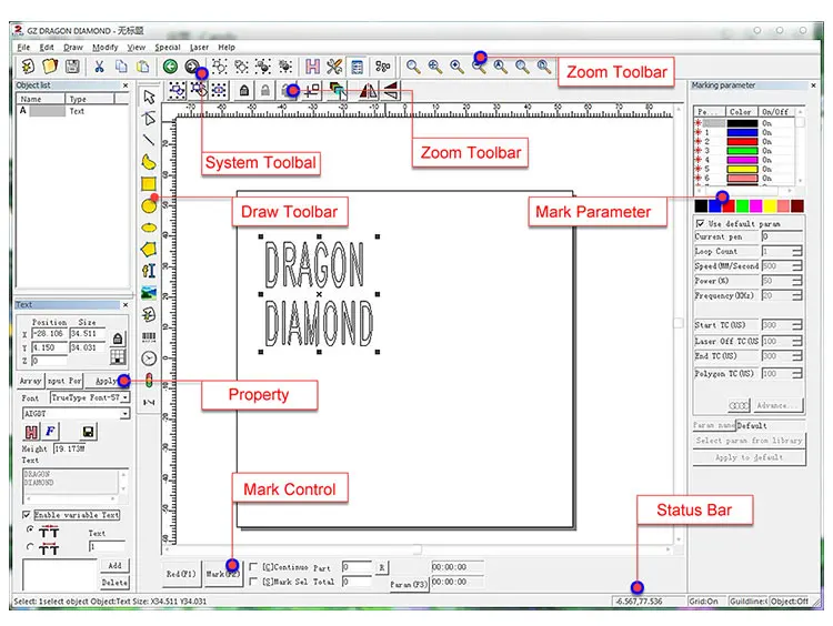 | Graphic Format Supported: | AI,BMP,DST,DWG,DXF,DXP,LAS,PLT; | Application: | Laser Marking; |