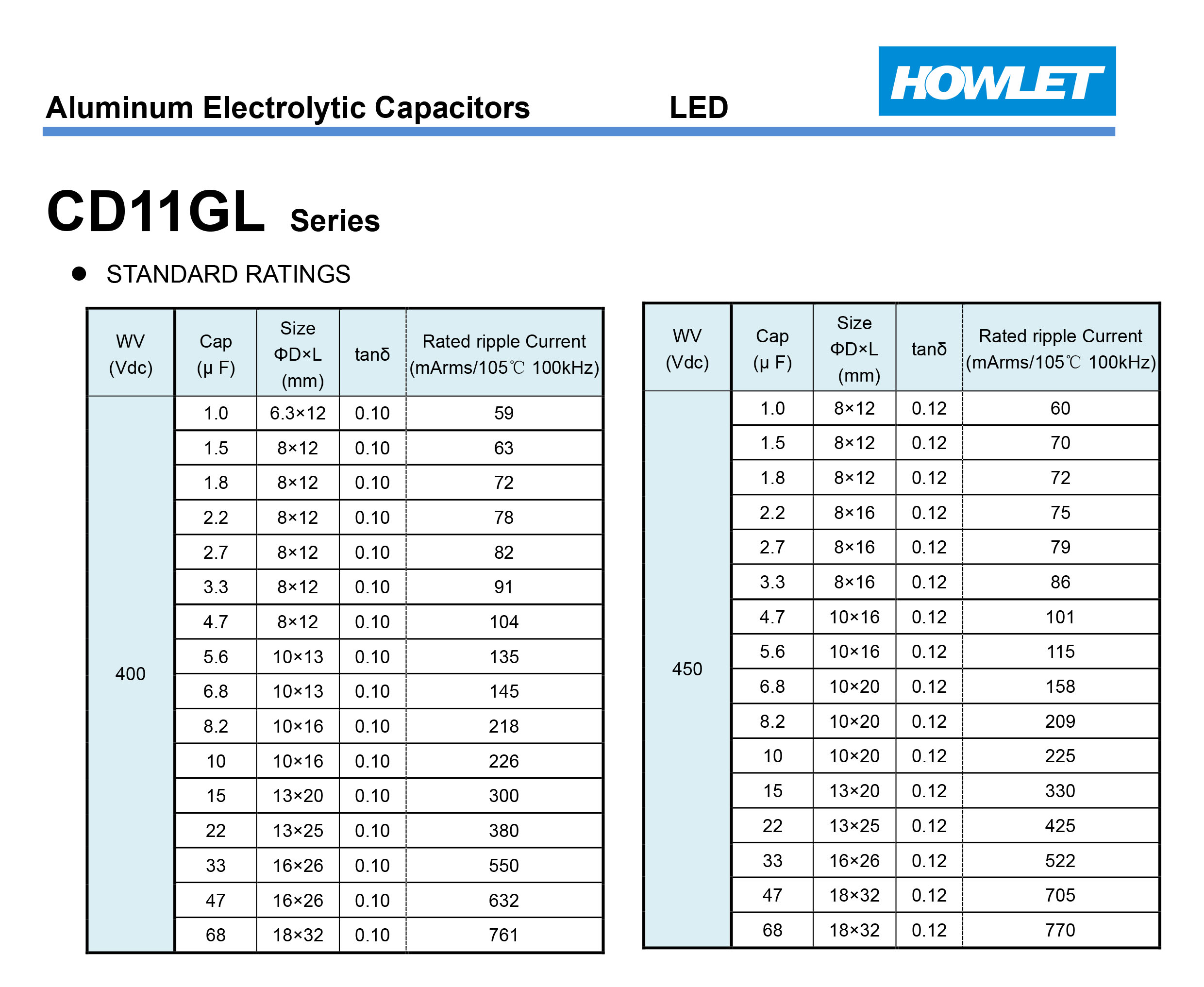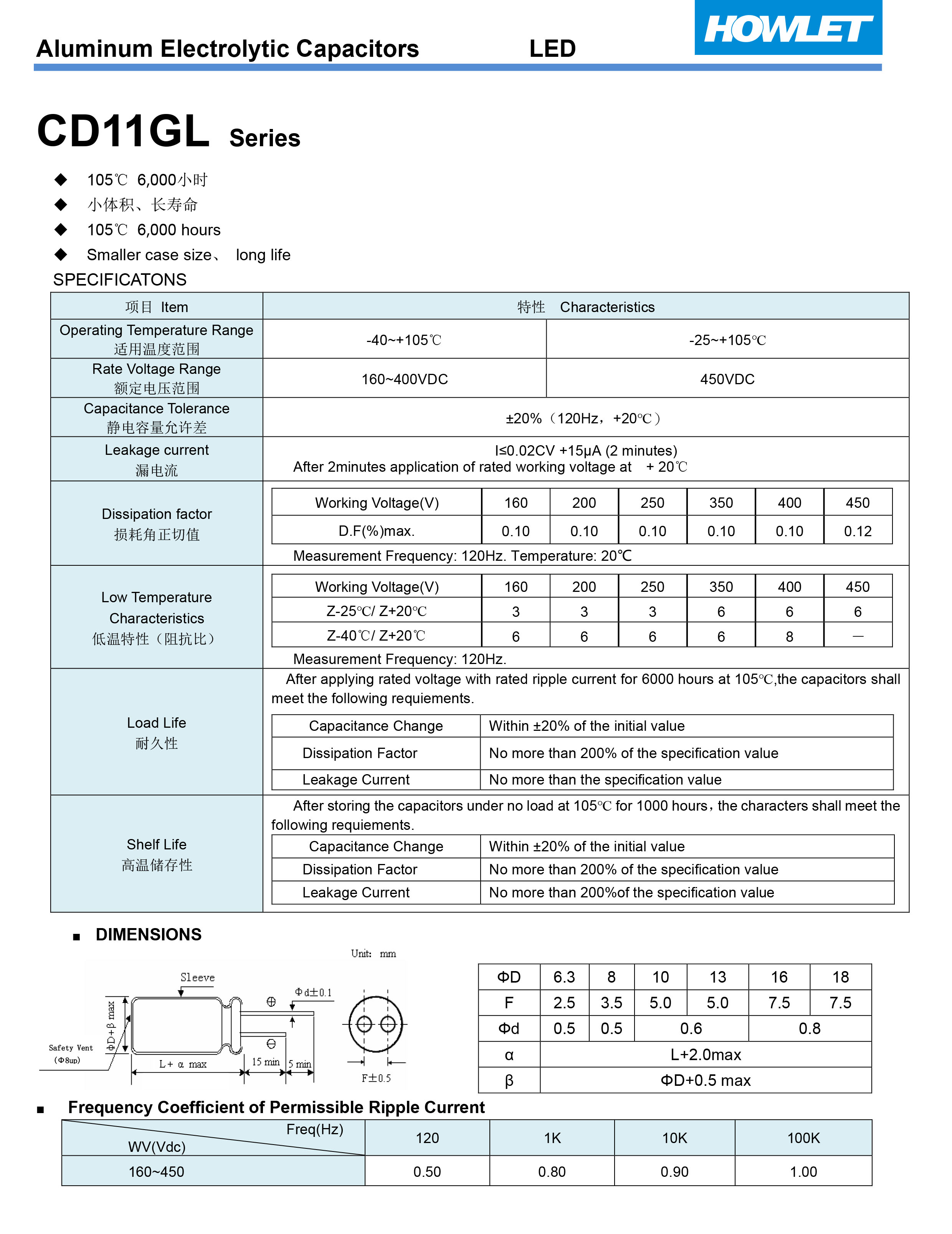 | Card: | HOWLET, aluminum electrolytic capacitor | Rated voltage: | 160~400VDC |