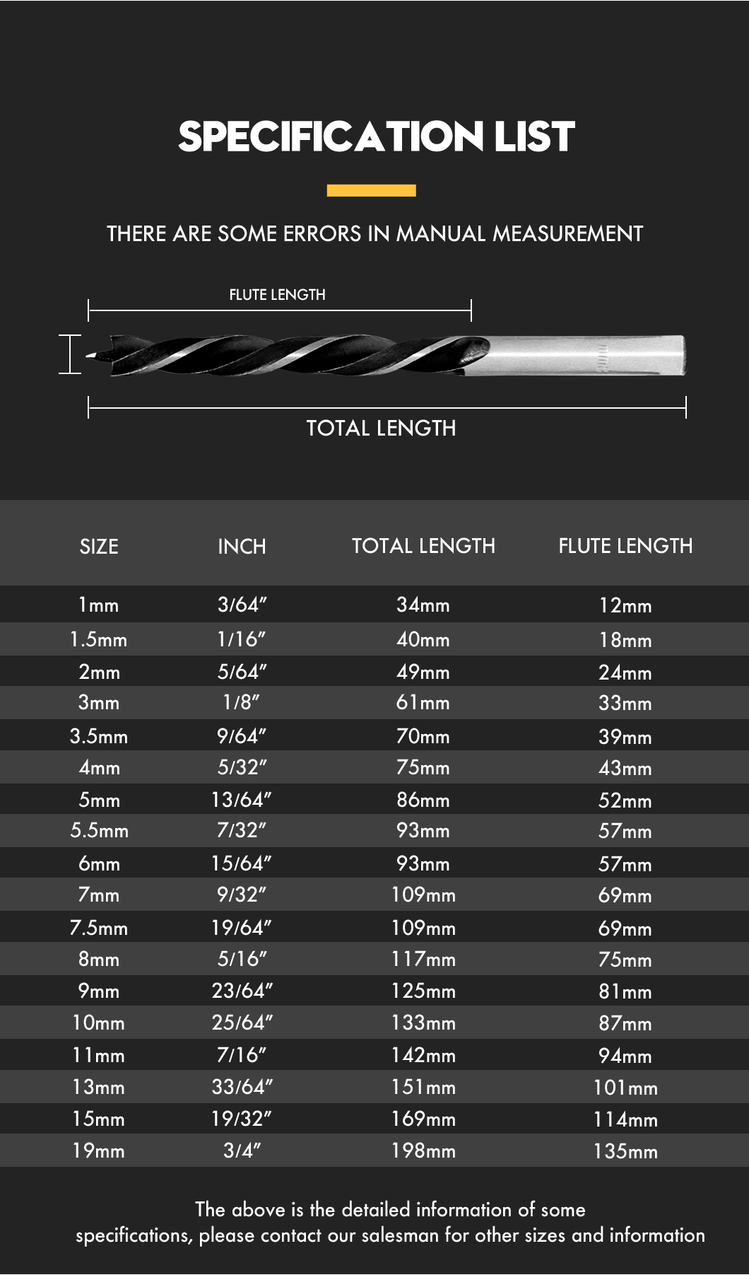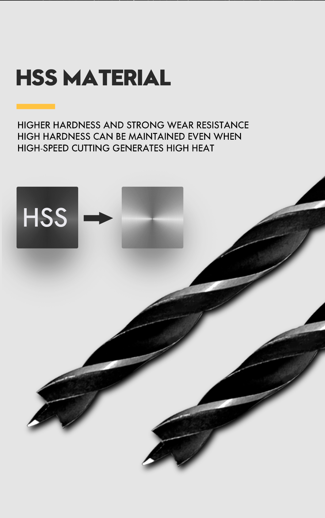 1. Made of high-quality hardened carbon steel, durable; 2. Brad point tip provides accurate positioning for drilling holes; 3. Spur cutting edge reduces cracking and ensures smooth and clean holes; 4. Large and smooth chip removal groove, wood chips are discharged 5. The round shank is designed for use with electric drills, drill presses and boring machines; 6. The drill bits are precision ground for use in furniture making, dowels, cabinets and other woodworking applications that require precise hole sizes.