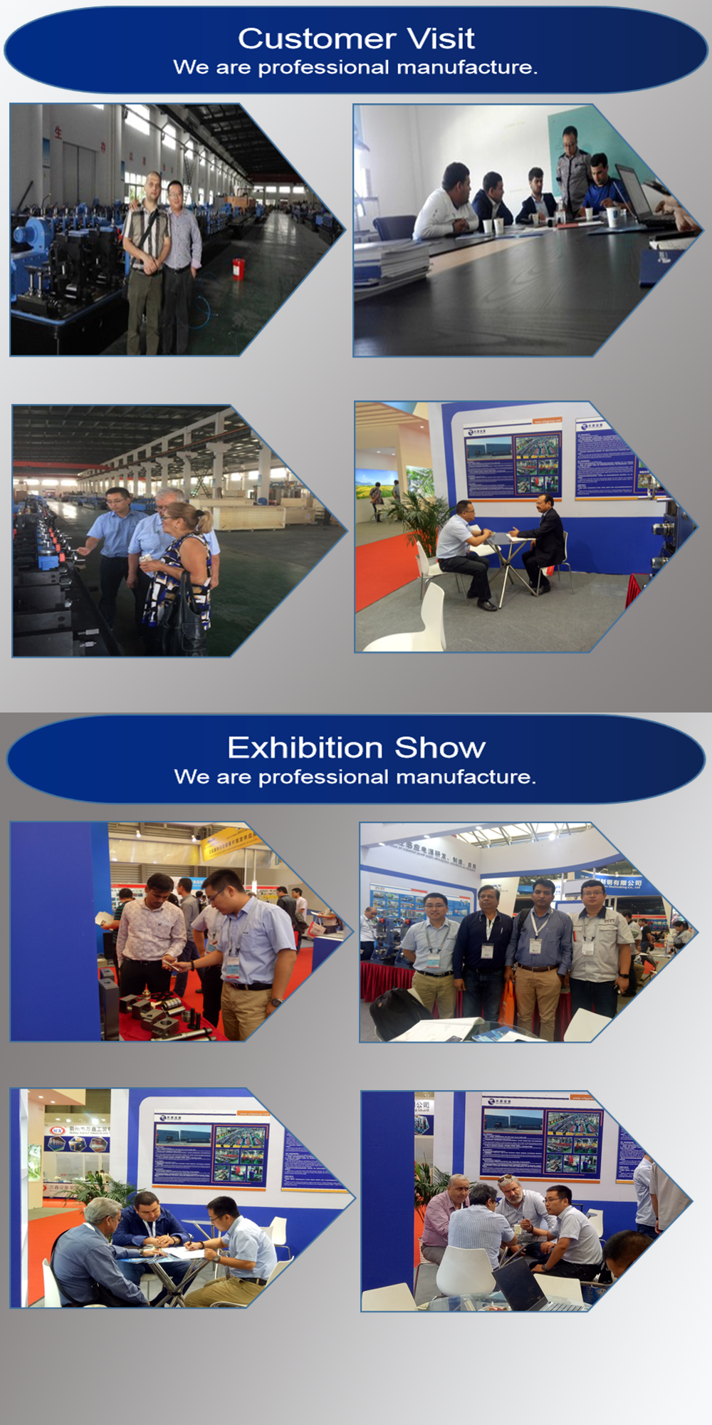 The company's main products are precision high-frequency welded pipe machines, cold roll forming machines, cable bridge forming machines, highway guardrail forming machines, steel frame forming machines, scaffold panel forming machines, C-groove forming machines, and elevator hollow guide rail forming machines. The elevator hollow guide rail forming machine, high-speed section steel roll forming machine, and automatic plate shearing butt welding machine developed and designed by us are in the leading position in the industry.