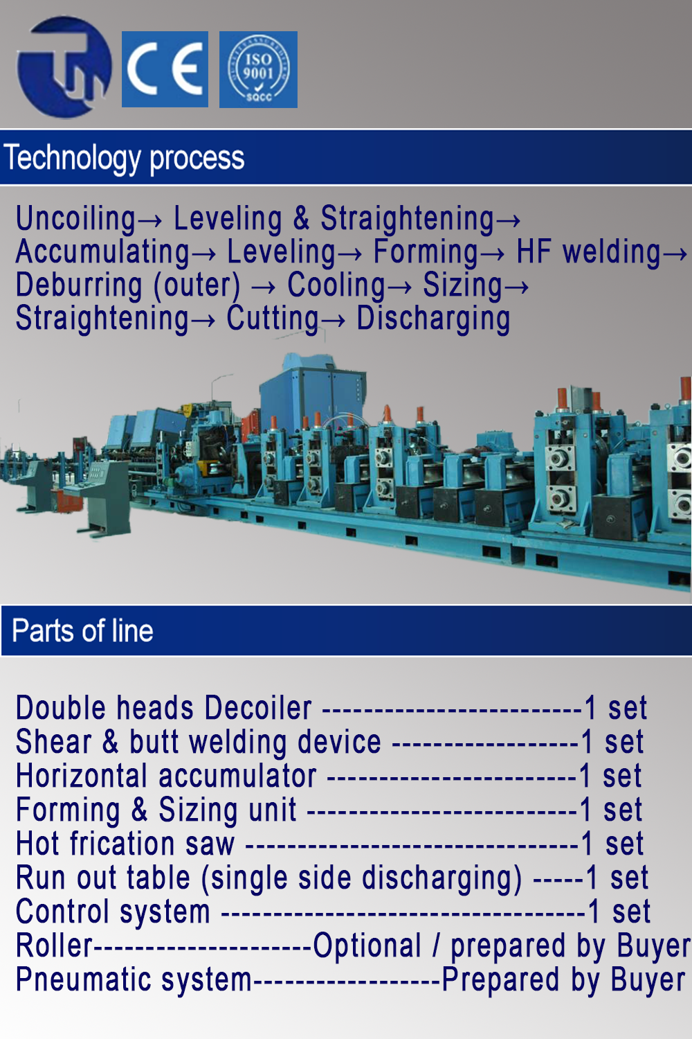 | Type of machine: | Tube mill production line | Mechanical test report: | if |