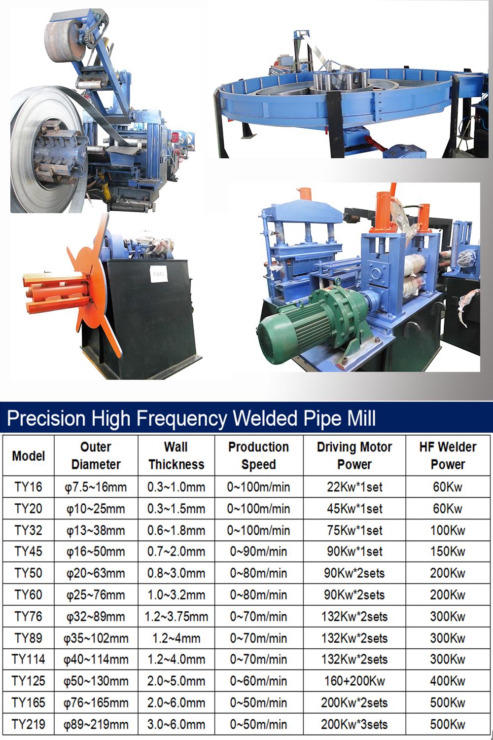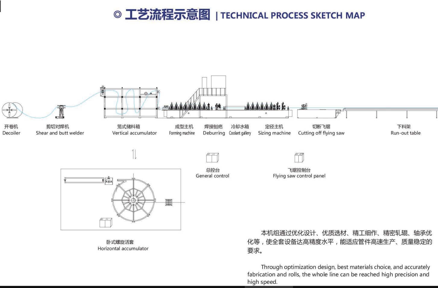 Our company specializes in R&D and manufacturing of precision high-frequency welded pipe production lines, roll forming production lines, elevator guide production lines and SS ARC pipe production lines, etc.